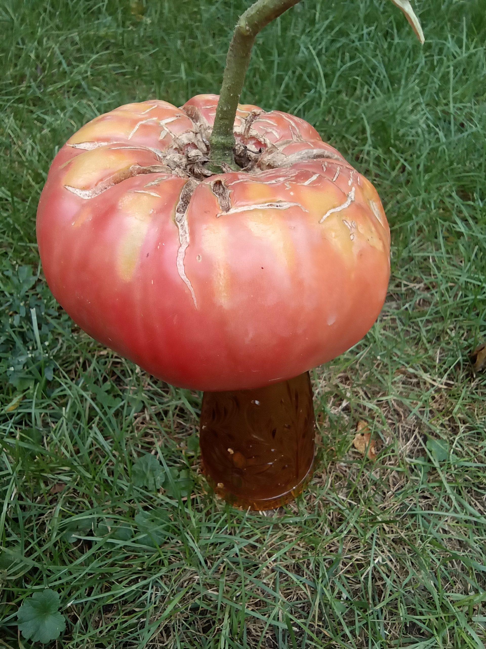 Flattened, reddish-pink fruit, curved at the poles, weighing 300 to 500 grams. Heavily ribbed at the top. Very deep corky depression at the stem attachment. Beefsteak-type flesh with a mild flavor. Variety originating from the USA.